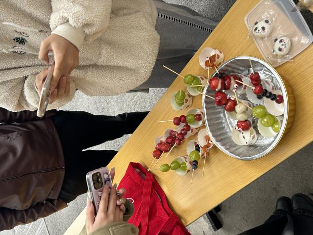 特别引人注目的是一位糖葫芦摊主,她的摊位不仅为现场带来一抹甜蜜的色彩,还巧妙地将传统美食与现代活动相结合,吸引了不少师生驻足品尝。糖葫芦的甜美滋味和浓浓的艺术氛围交织在一起,成为活动中一道独特的风景线。