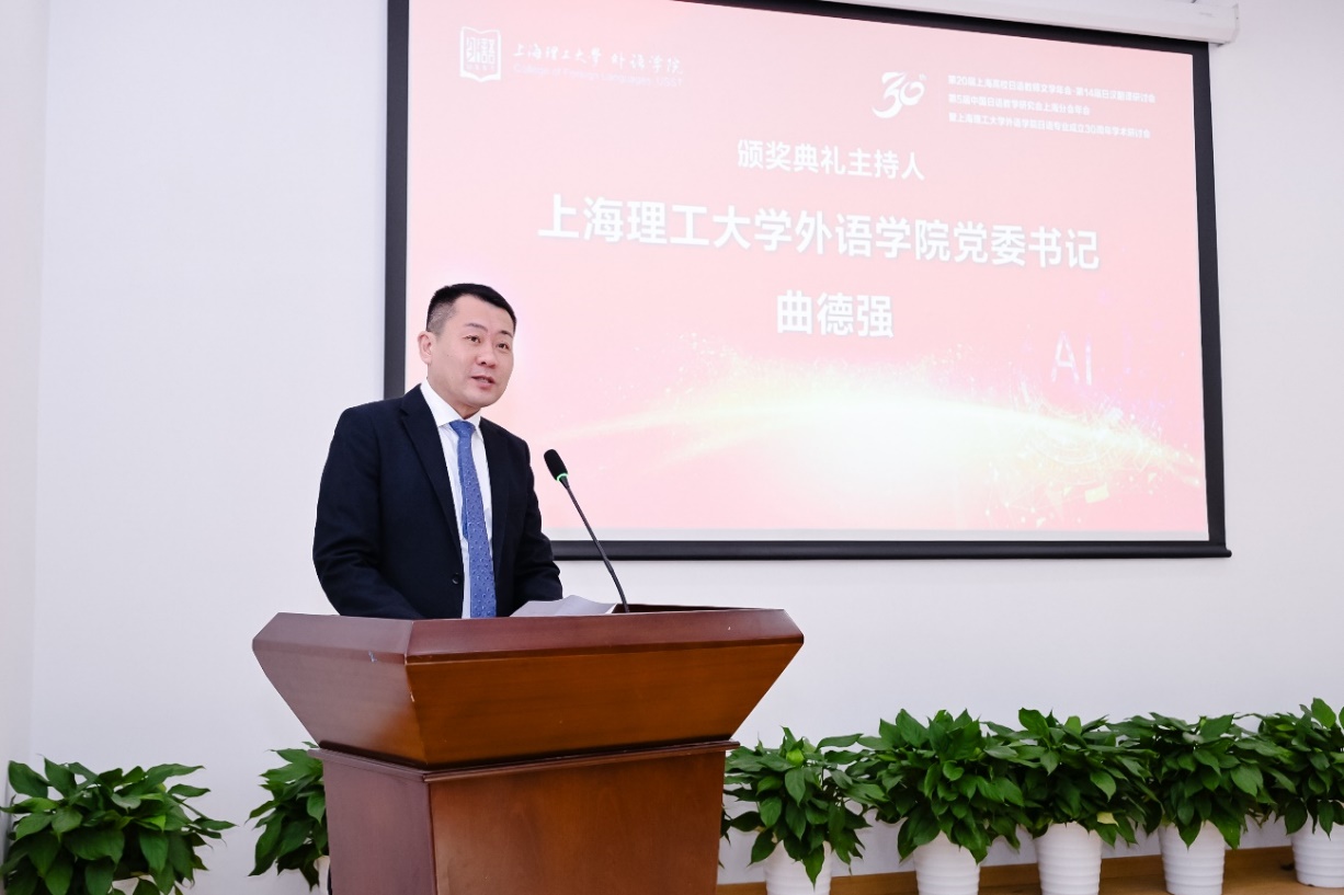 外语学院党委书记曲德强主持日语专业成立三十周年颁奖仪式。他指出,风雨兼程三十载,春华秋实育英才。日语系的发展源于社会各界的大力支持。