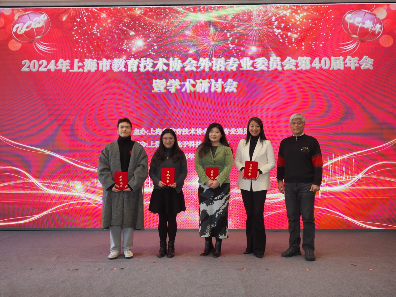 2025年1月17日,上海市教育技术协会外语专业委员会第40届年会暨学术研讨会在上海财经大学科创园区成功举办。此次盛会汇聚了来自复旦大学、上海交通大学、上海外国语大学、同济大学、华东师范大学、上海财经大学、beat365官方网站等30多所高校的领导、专家学者、教师代表及外语教育技术厂商代表,共计60余人共同探讨外语教育的未来发展方向。beat365官网院长刘芹教授携优秀论文评选获奖教师应邀出席,大会开幕式由刘芹主持。