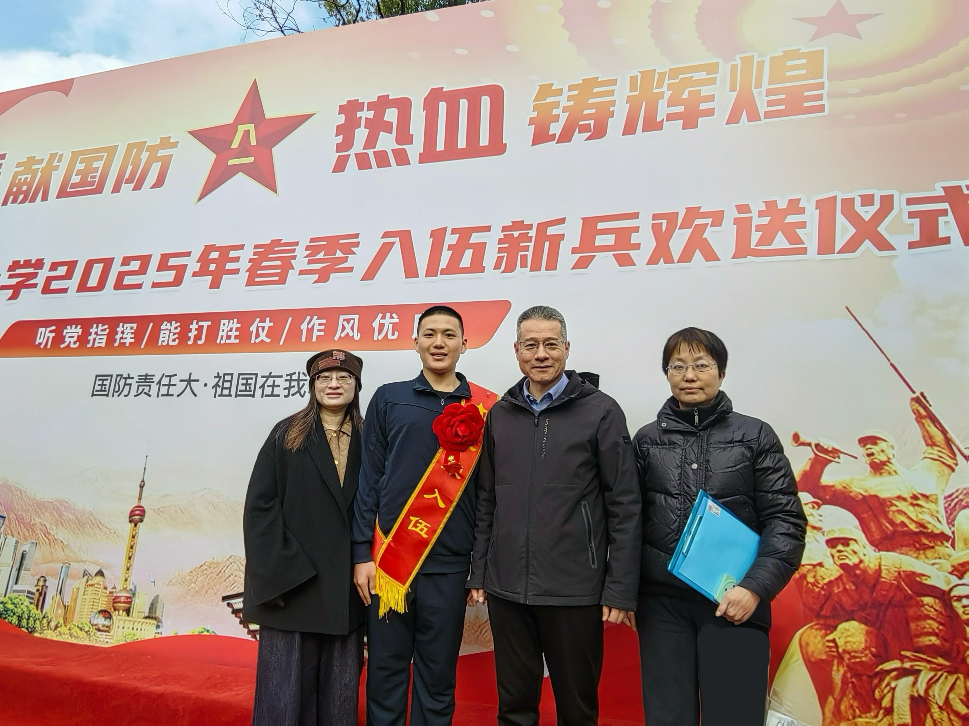 2025年春季征兵工作已进入尾声,beat365官网23级本科生杜冉曦同学经过严格的体格检查、政治审查和综合素质考评,即将迈入军营,成为一名光荣的人民子弟兵。杜冉曦同学一年前就报名应征且通过体检,但因当时名额不够未能入选。杜冉曦同学并未气馁,去年年底他再次报名,终于实现了军营梦,并在今天的欢送新兵入伍仪式上作为全校新兵代表发言。他是我们全体同学学习的榜样,希望他入伍后刻苦训练,展现新时代大学生风貌,为校添彩,为国争光,争当新时代的优秀军人。