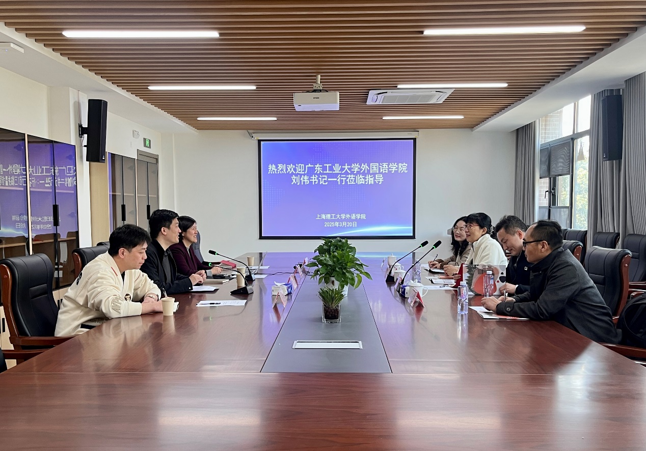 3月20日下午,广东工业大学外国语学院党委书记刘伟、副院长李道全、院长助理任朝旺、党政办主任谭小琴一行四人来beat365官网调研。beat365官方网站院长刘芹、副院长张乐和相关办公室人员参加了座谈会。会议由张乐主持。
