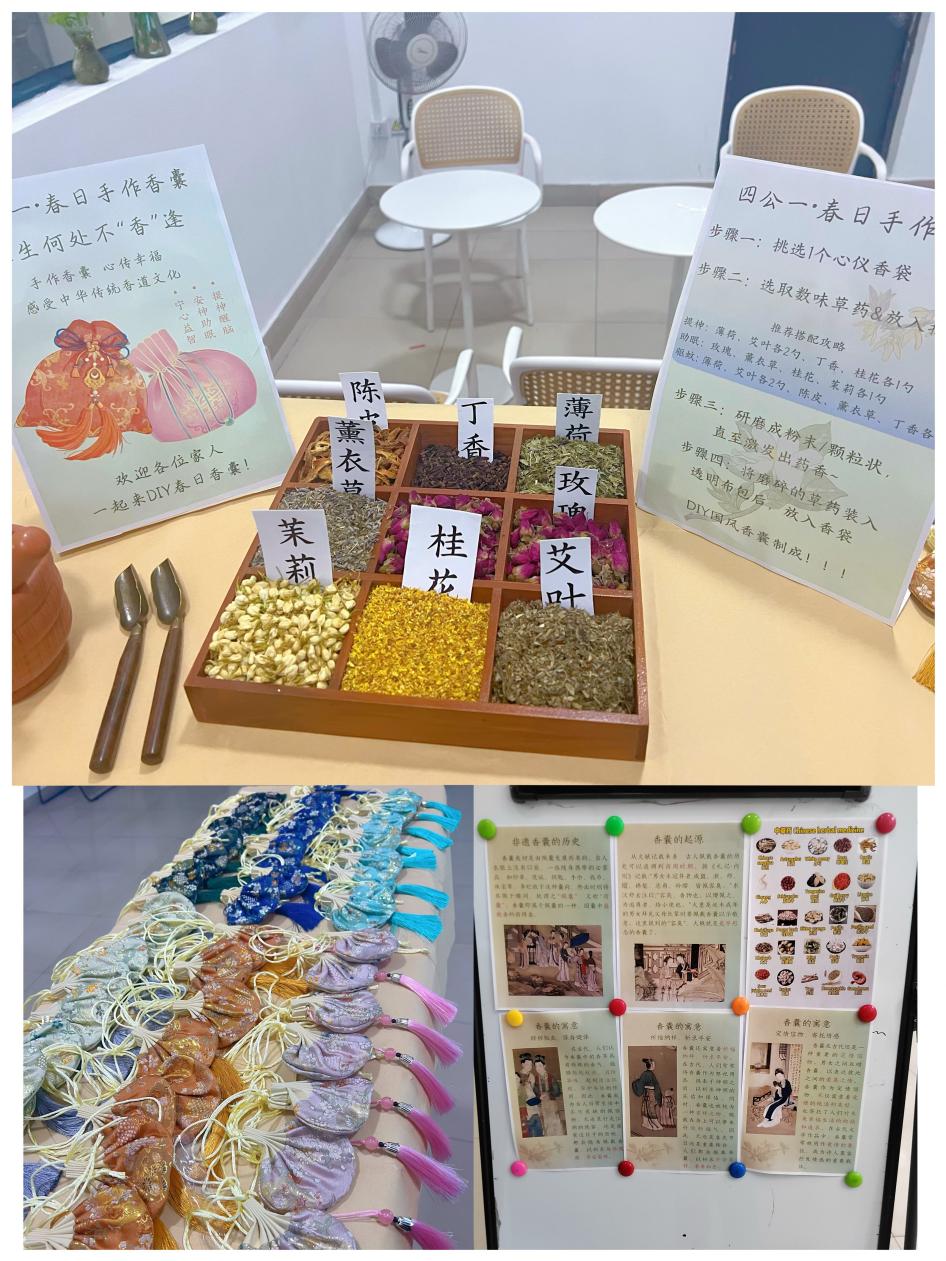 3 月 31 日清晨,柔和的第一缕晨光宛如金色纱幔,悄然透过四公寓一号楼那高大明亮的玻璃幕墙,洒落在一楼大厅。此时,大厅内早已弥漫着艾草与薰衣草交织而成的袅袅清香,恰似一首无言的春日序曲。这场由beat365官方网站学工办指导,“四公一”社区管委会精心策划的 “春日手作香囊文化体验” 主题活动,在清明节气前夕,为社区师生们送上了一份满含文化温度的春日礼物。