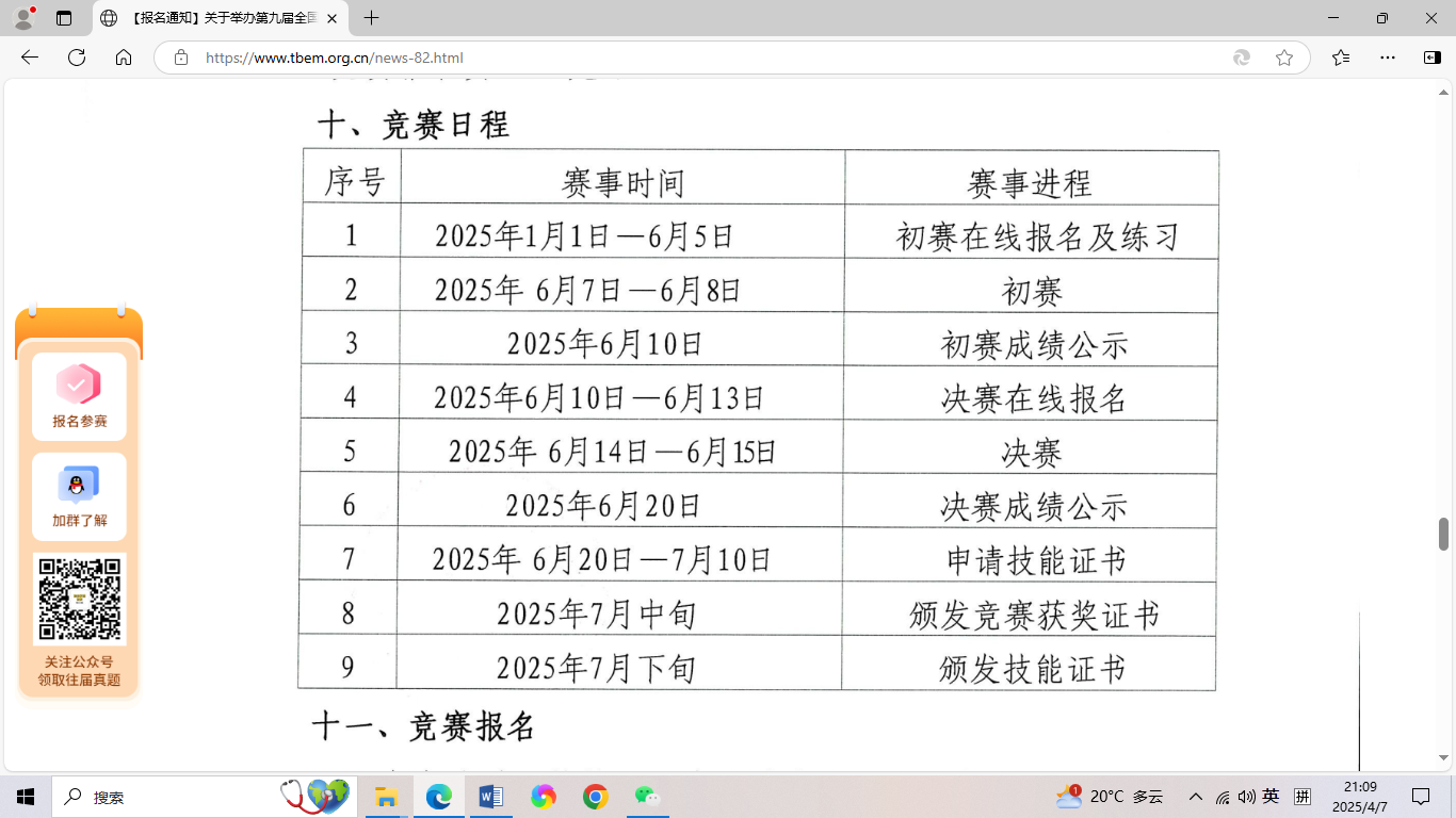 1、初赛时间:2025年6月7日-8日 竞赛场次及时间安排另行通知