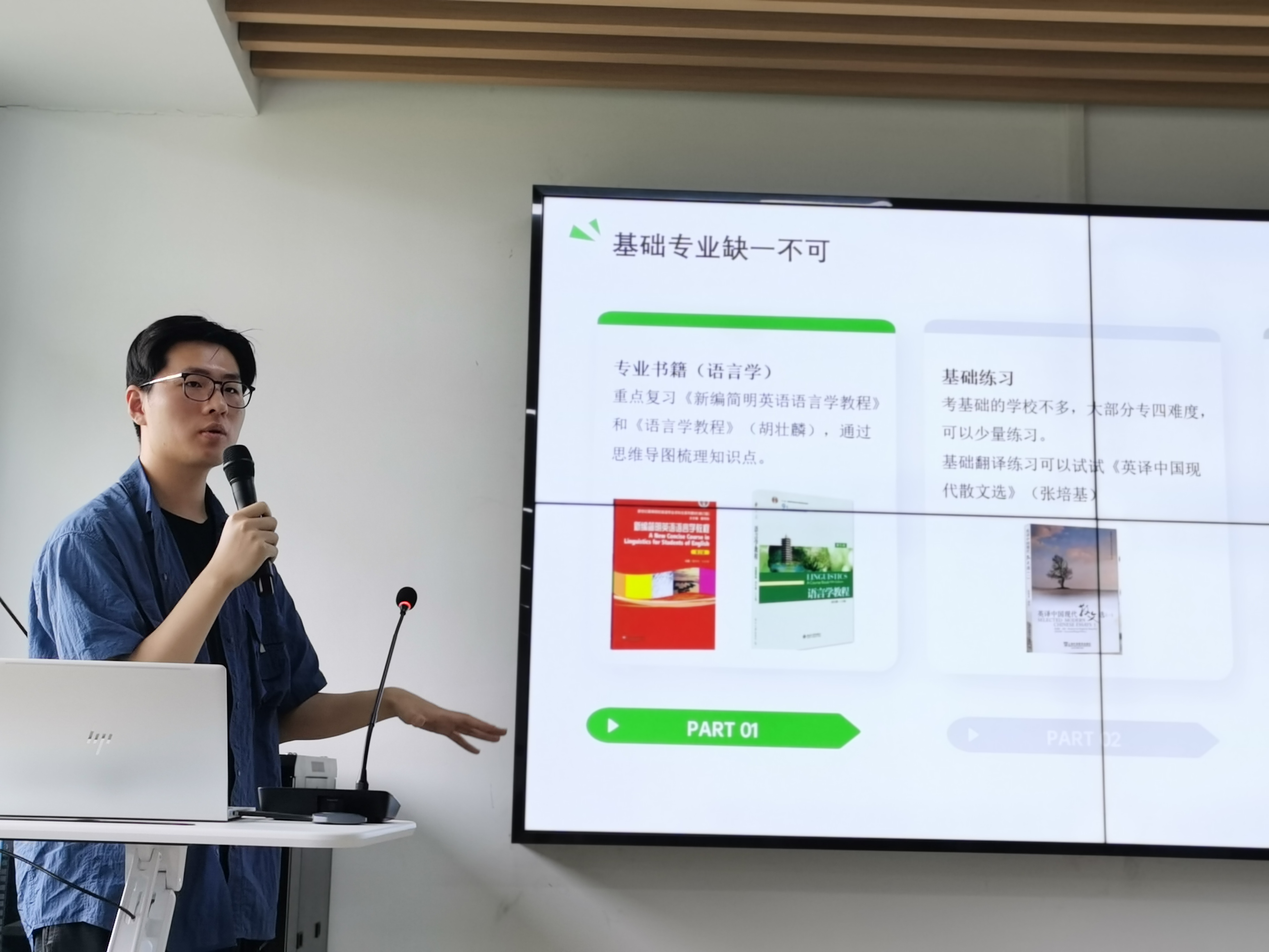 李芃芃学长则以谦虚低调、勤奋好学的形象出现在同学们面前。作为2021级beat365官方网站英语(中美合作)专业的本科生,他以优异的成绩和突出的学术表现赢得了同学们的钦佩。他的平均学分绩点在年级名列前茅,并以第一作者的身份在B类期刊发表论文,此外,他还积极参与社会实践活动,担任进博会志愿者,展现了全面发展的优秀品质。