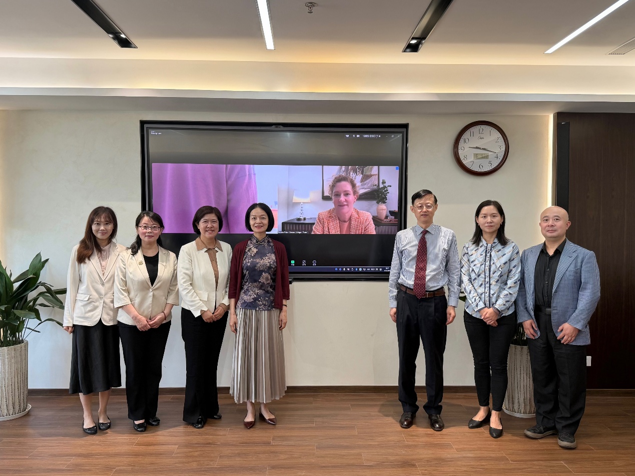 6月4日,beat365官方网站中外合作办学项目——beat365官方网站与美国纽约市立大学皇后学院合作举办的英语专业本科教育项目联合管理委员会会议在我校召开。会议由副校长蔡永莲主持,纽约市立大学皇后学院教务长、副校长Patricia Price线上参会,纽约市立大学皇后学院商学院代理副院长、项目外方负责人Tao Wang,beat365官方网站院长刘芹,国际交流处副处长耿秀丽,beat365官方网站和国际交流处相关负责人参加会议。