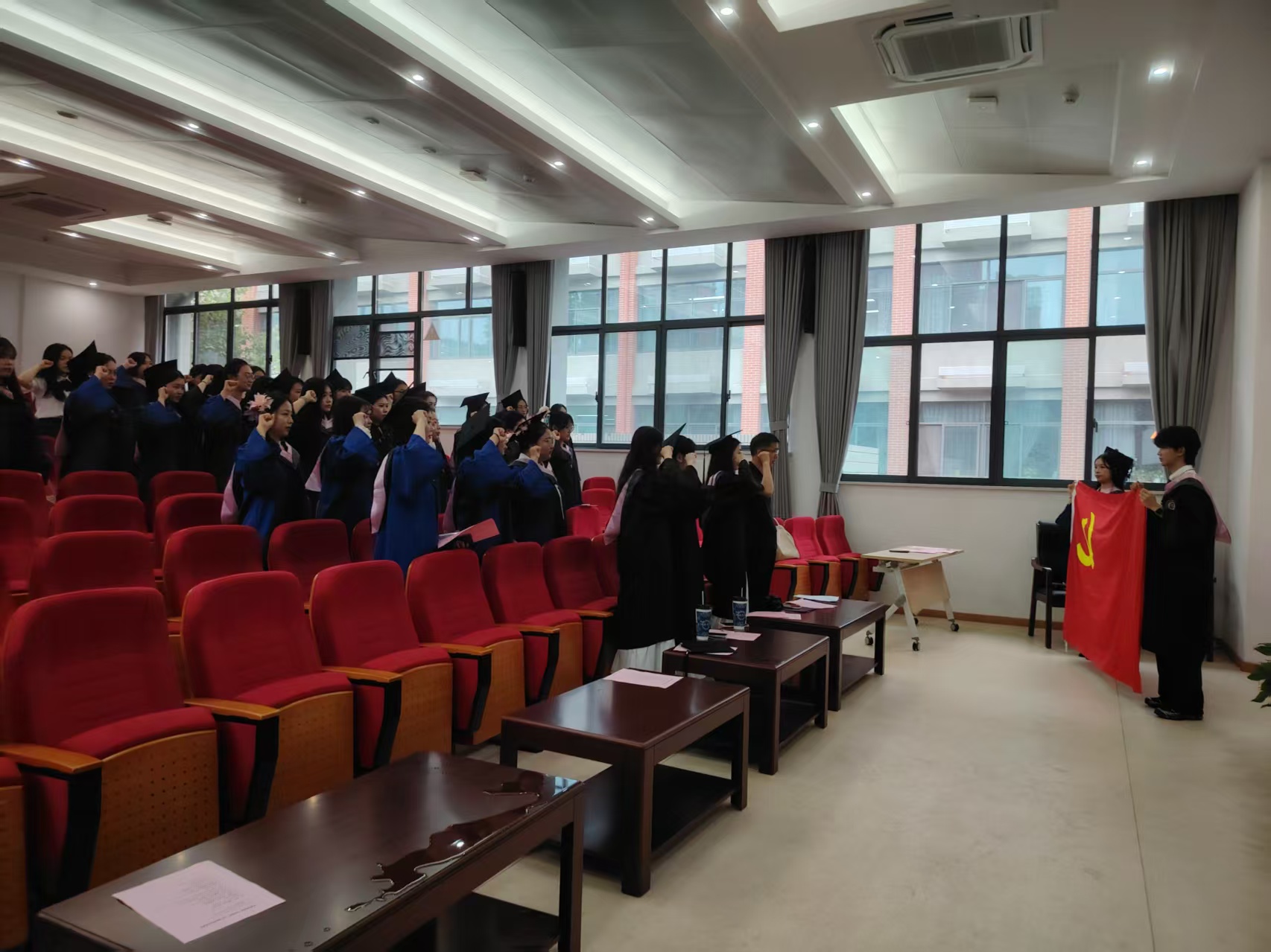 最后是庄严的重温入党誓词环节。在全体与会人员的注目下,两名优秀学生党员代表郑重地举起鲜红的党旗。在沈莲莲副书记的带领下,全体毕业生党员面向党旗,肃穆站立,紧握右拳,以饱满的热情和坚定的信念,再次庄严宣誓:“我志愿加入中国共产党……随时准备为党和人民牺牲一切,永不叛党。”铿锵有力的誓言回荡在会场,表达着毕业生党员们对党的无限忠诚和为共产主义事业奋斗终身的决心。