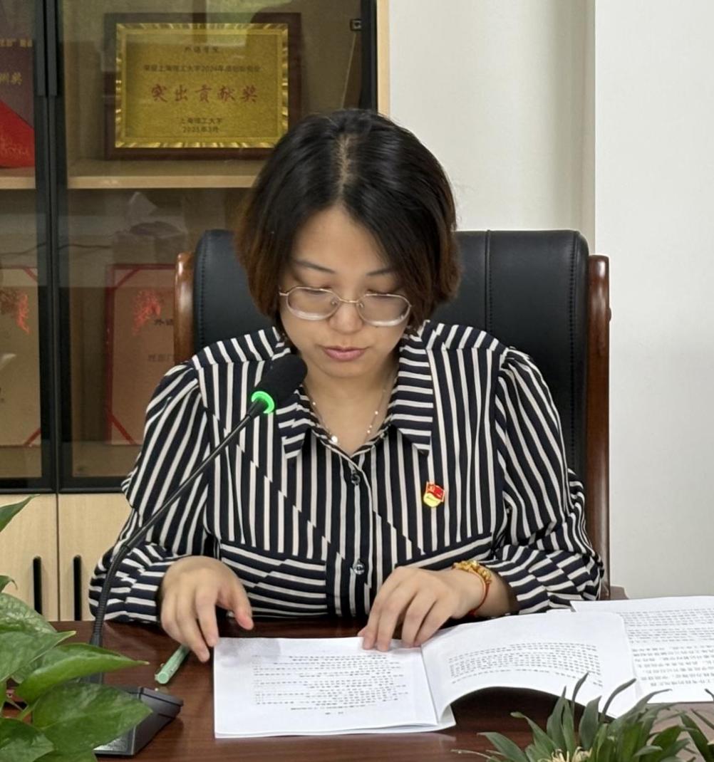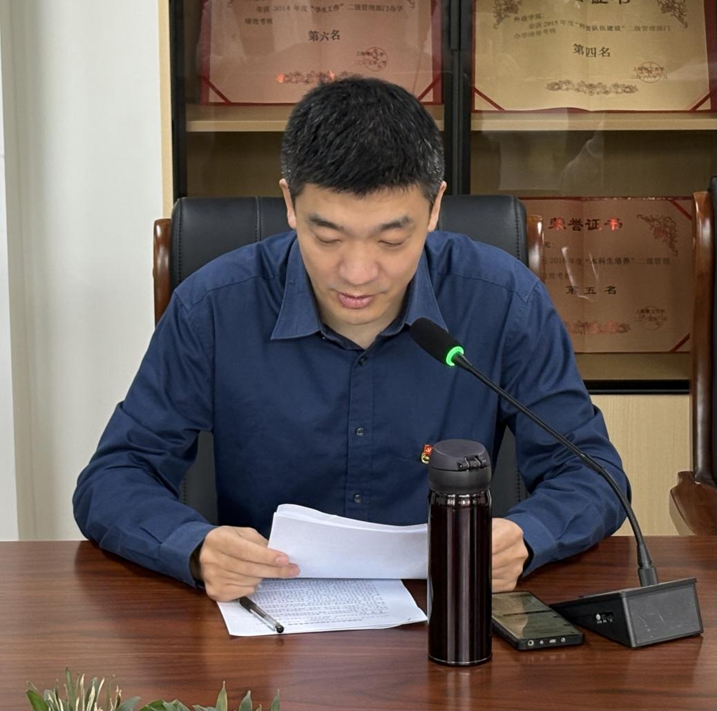 副院长韩戈玲以《以上率下转作风——开拓研究生教育工作新局面》为题讲授专题党课。她紧扣《习近平关于加强党的建设论述摘编》的核心要义,深刻阐述中央八项规定作为改进作风关键切入点与动员令的重要意义,强调学院应以中央八项规定为指引,全面净化党风,以优良党风引领教风、学风建设。针对研究生教育工作,她着重指出领导干部要充分发挥示范引领作用,推动作风建设常态化长效化,优化研究生培养环境,开拓研究生教育工作新局面,切实提升研究生教育质量。