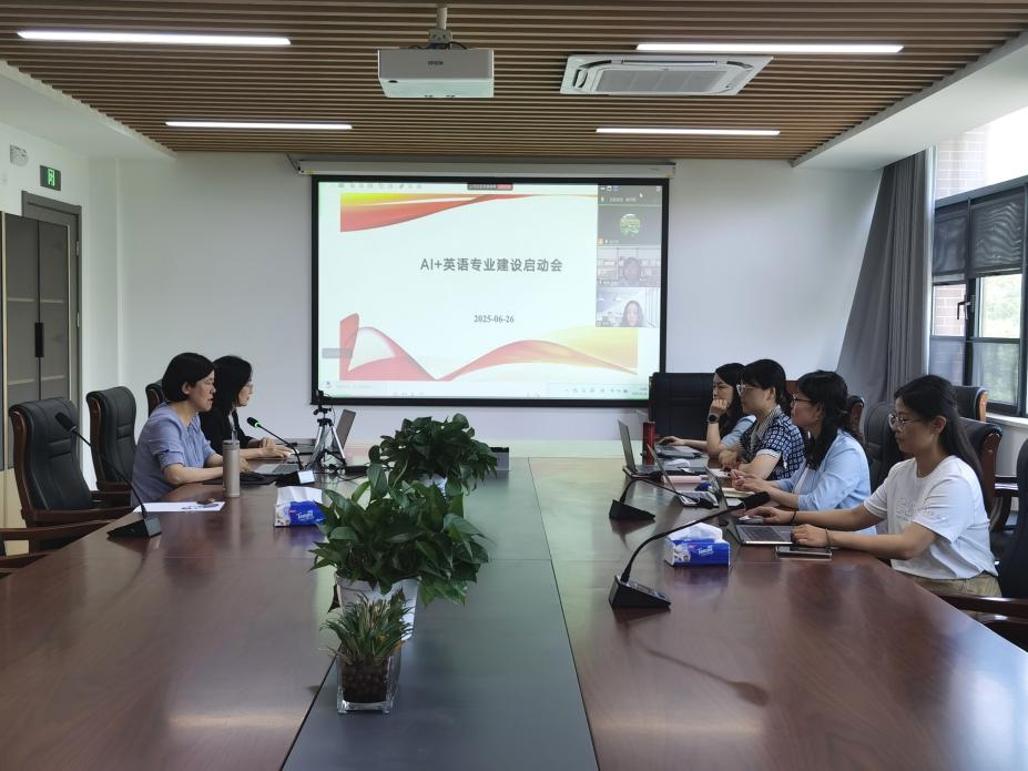 2025年6月26日上午,beat365官方网站在306会议室召开“AI+英语专业建设启动会”,标志着学院在专业建设领域迈出了重要一步,将积极探索人工智能与英语专业深度融合的新模式,为培养适应新时代需求的复合型人才奠定坚实基础。会议由beat365官方网站院长、英语专业负责人刘芹主持,英语(中美合作)系主任黄芳、英语(科技翻译)系主任邬菊艳和相关课程负责人齐聚一堂,共同探讨AI+英语专业建设的规划与实施细节。会议围绕AI+专业建设的依托背景、课程设置、师资团队组建、教学大纲修订以及课程资源建设等关键议题展开了深入讨论。