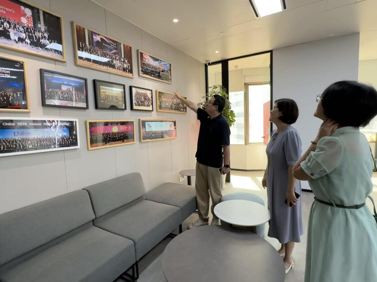 活动伊始,张健总监陪同校方代表参观了企业办公环境及校企合作展览展示区域,详细介绍了迈氏会展集团的发展历程、核心业务及全球化战略布局。作为会展行业的领先企业,迈氏深耕中国市场多年,在大型会议策划、国际展览组织、品牌活动运营等领域具有显著影响力。张健特别强调了企业对具备跨文化沟通能力、项目管理能力和创新思维的高素质人才的迫切需求,并分享了企业在校企合作实习基地建设、人才梯队建设、员工职业发展通道等方面的实践经验。