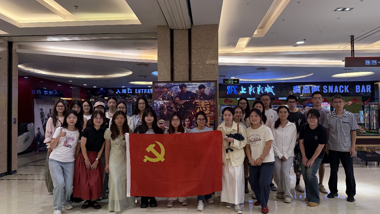 为深入学习贯彻习近平新时代中国特色社会主义思想,赓续红色血脉、厚植家国情怀,10月12日上午,英语语言文学党支部书记王晨、笔译党支部书记梁作甲带领两支部全体党员学生赴上影国际影城(百联滨江店)观看爱国主义影片《志愿军:浴血和平》,以“电影党课”的特殊形式共上一堂“沉浸式”思政大课,在光影中回望峥嵘岁月,于银幕前砥砺青春担当。