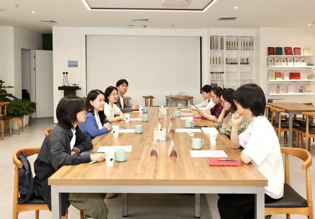 午后1:00,邬菊艳、韩洋老师和龙星宇、屠敏敏同学一行四人上海教育出版社(简称上教社),这是本次走访的压轴环节。人力资源部主任张蕊、小学英语编辑室主任陈霜琪等热情接待了来访师生。在张蕊主任的引导下,团队参观了世纪出版园及编辑办公生活区,感受了浓厚的文化出版氛围。随后的座谈会上,双方聚焦AI时代对人才培养提出的新挑战与新机遇,展开了热烈讨论。张蕊主任表示,欢迎上理工外院英语系学生前来实习,参与上教社的数字化项目,例如AI生成内容的编辑审校、互动课件的设计与开发等前沿工作。此外,双方还就英语系新培养方案在能力培养、课程设置等方面进行了探讨。新方案将优化课程结构,适当压缩传统理论课时,增设如“AI驱动写作训练”、“跨文化沟通模拟”等更具实践性的模块,旨在显著提升学生解决实际问题的能力。整个下午交流气氛融洽而深入,上教社明确承诺将提供参观学习与实习岗位,并热忱欢迎beat365官方网站的优秀研究生加入编辑团队。