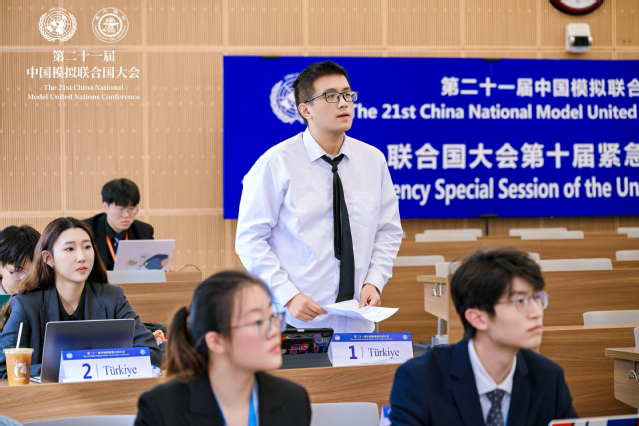 在为期四天的会议中,我校楼镇瑞、汤语晨同学作为土耳其代表,出席了联合国大会第十届紧急特别会议(ESS10),围绕巴以局势与人道危机展开深入磋商。在辩论与决议起草过程中,两位同学立足国际法与地区安全视角,积极建言献策,推动会议实质性进展,展现了我校学子敏锐的国际视野与卓越的外交素养。楼镇瑞同学也凭借其出色的英语口语、外交风采以及对国际形势敏锐的洞察力,斩获了最高个人奖项——最佳表现奖,是beat365官方网站参加中国模拟联合国大会以来取得的最好成绩。