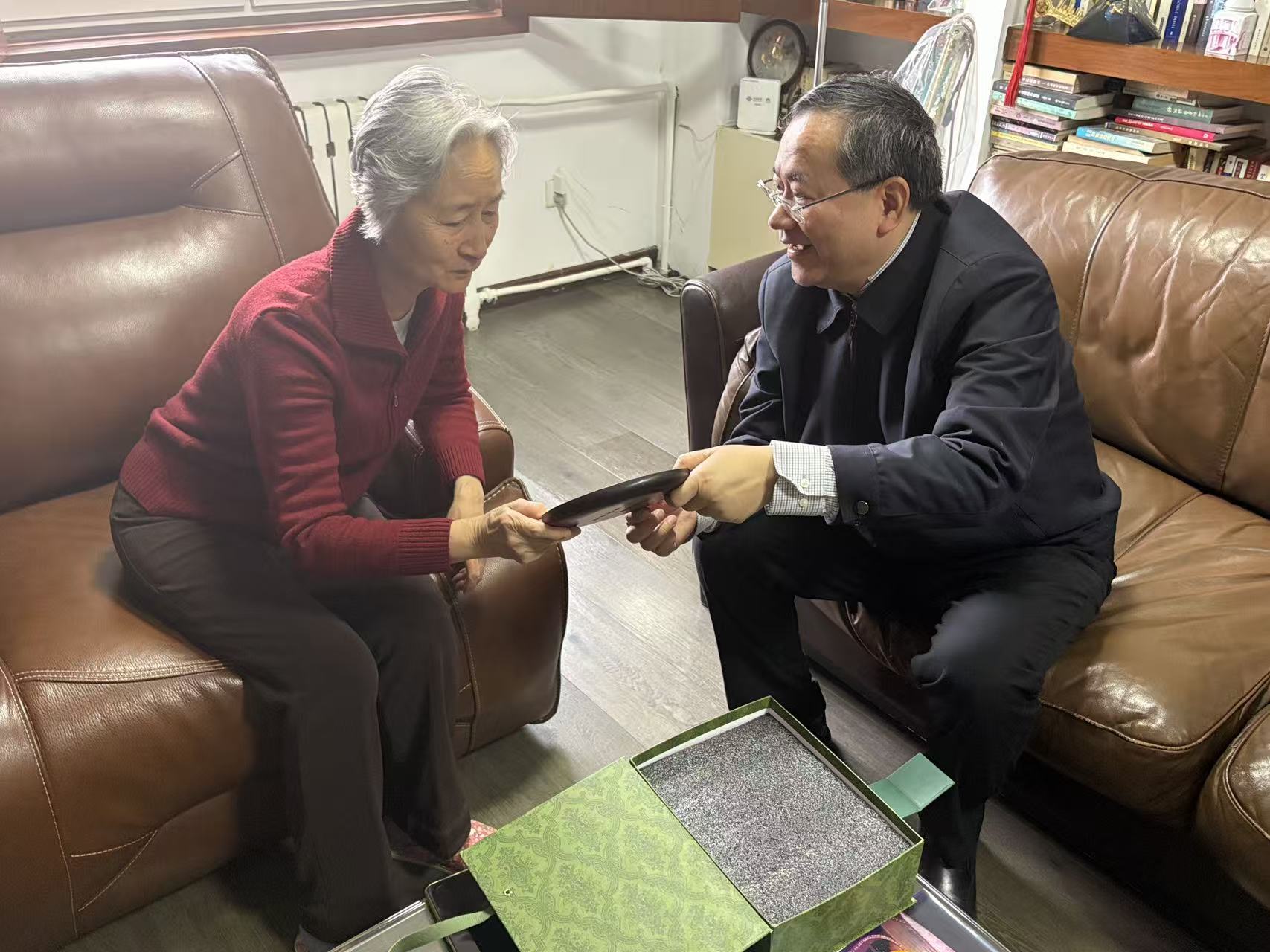 朱新远首先代表学校转达了母校对李道豫伉俪的深切问候和祝福,献上了学校精心制作的校友纪念盘,并与吴振蓉先生进行了座谈。交流中,朱新远向吴振蓉先生介绍了学校发展历程、未来规划及近年来在科技创新、人才培养等方面取得的显著成效。他强调,全体上理人正凝心聚力,深入贯彻落实党的二十大三中、四中全会精神,严格按照市委市政府决策部署,锚定国家和地方经济发展需求,以实干笃行推动学校建大建强、行稳致远,为120周年校庆献礼。吴振蓉先生愉快地回忆了在校园里的儿时岁月,深情地讲述了当时和大学生一起在沪江大学食堂就餐、请学姐梳头等一段段美好的求学和生活经历。她表示将和李道豫大使一起一如既往地关注和支持母校的发展,为母校的建设贡献自己的力量。
