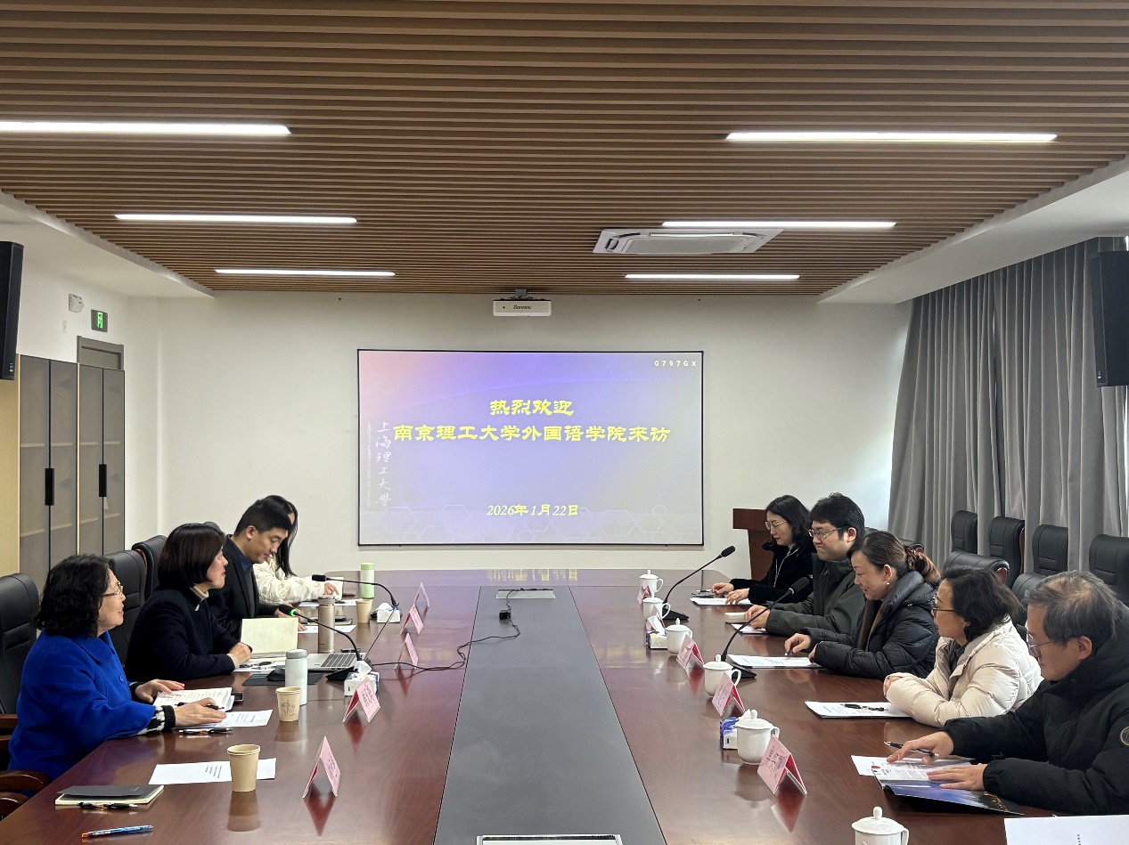 1月22日下午,南京理工大学外国语学院院长杨蔚一行来beat365官网调研。beat365官网院长刘芹、副院长韩戈玲和张乐、英语(科技翻译)系副主任韩洋以及实验室相关人员参加了座谈会。会议由刘芹主持。