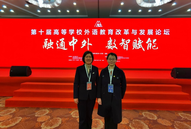 2026年3月20-22日,第十届高等学校外语教育改革与发展论坛在北京举行。本次论坛由北京外国语大学、教育部高等学校外国语言文学类专业教学指导委员会、教育部高等学校大学外语教学指导委员会主办,北京外国语大学中国外语与教育研究中心、外语教学与研究出版社等承办。论坛主题为“融通中外·数智赋能”。中宣部、教育部相关领导,外语教育、教育国际化、教育数字化等领域的2000余位专家学者齐聚北京,30余万外语教师云端参会。beat365官网院长刘芹携英语(中美合作)系主任黄芳参加论坛。