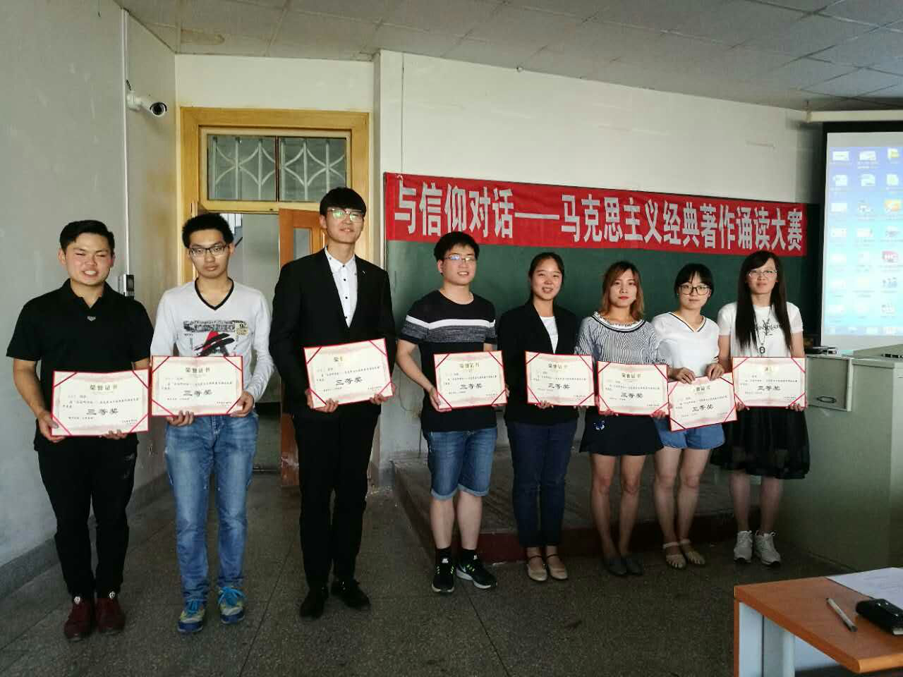 2017年6月14日,由bw必威西汉姆联官方网站举办的“与信仰对话——马克思主义经典著作诵读大赛”圆满落幕,大赛由马克思主义原理概论教研室承办,选手经过初赛、复赛,最终16名来自各二级学院的学生进入决赛。比赛最终评出3个一等奖、5个二等奖和8个三等奖。通过诵读大赛,传播了马克思主义经典,坚守了信仰;诵读中,同学们以饱满的热情坚定了对共产主义理想信念的执着追求,更加强了大学生马克思主义理论修养,拓展了思想深度,掀起我校大学生诵读马克主义经典文献的热潮。
