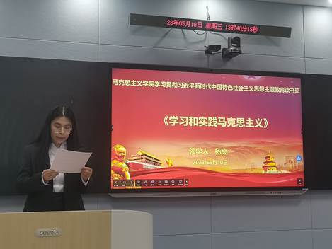 杨亮老师在领读领学过程中,结合课程教学大纲,深度解析了《学习和实践马克思主义》(习近平总书记在纪念马克思诞辰200周年大会上的讲话)这篇文章,阐释了文章中9个内容既独立存在,又在相互之间存在着密切的关系。