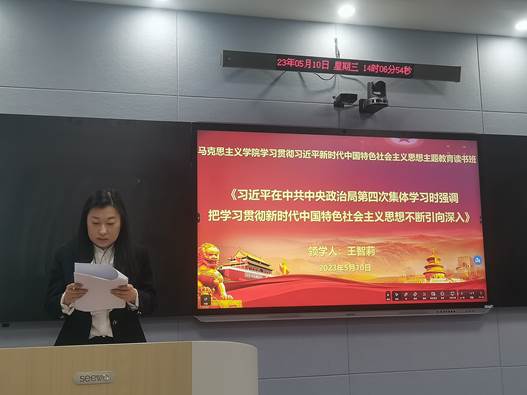 周克刚领读领学了《党的二十大报告:开辟马克思主义中国化新境界》,他从二十大报告中“五个第一次”解读了马克思主义中国化新境界的内涵,带领全体党员全面深入理解和把握“新境界”究竟“新”在哪里;从全面贯彻新时代党的教育方针,落实立德树人根本任务,解析我校奋力开启区域闻名、全国著名、国际知名的高水平教学研究型大学建设新征程,努力建设五彩化大的新方向;从促进“大党建+铸魂育人”深度融合,以高质量党建引领、推动和保证学院改革发展的角度引领马院建设发展。