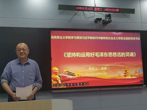 徐锋老师从思政教师教学研究工作出发,谈了对《坚持和运用好毛泽东思想活的灵魂》一文的认识。他提出,在科研上要提质,避免发表低水平、低质量的作品;在教学上要讲好道理,提升课堂质量,避免形式主义;在政治理论学习上,要用好“学习强国”平台。