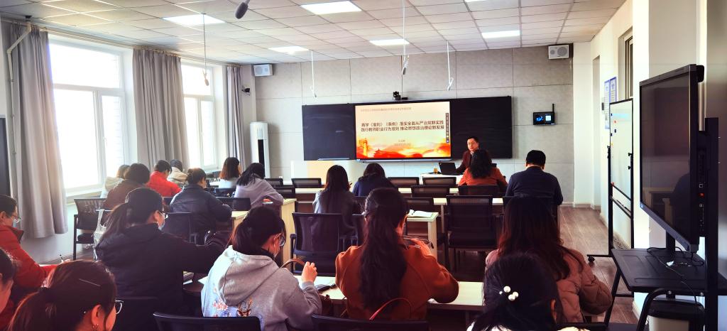 王成家书记从深刻认识《中国共产党廉洁自律准则》和《中国共产党纪律处分条例》的重大意义,增强贯彻落实的自觉性准确把握《准则》和《条例》的鲜明特点,使之成为全党共同遵守的行动指南和行为准则不折不扣执行《准则》和《条例》,切实把纪律和规矩挺在前面开展讲授。围绕教师职业行为准则号召全体教师牢记习近平总书记政治要强、情怀要深、思维要新、视野要广、自律要严、人格要正的“六要”嘱托,坚持“六要”标准,做好思政课教师。