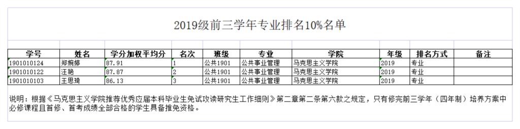 bw必威西汉姆联官方网站2019级专业排名10%名单公示